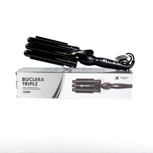Exxtra Tech Buclera Triple – Para Crear Rulos Suaves y Ondulados 130W Descubrí la forma más sencilla de lograr peinados con rulos suaves y ondas perfectas con esta buclera triple Exxtra Tech. Su diseño innovador con tres barriles te permite crear ondas definidas y naturales en cuestión de minutos, brindándote un look profesional sin esfuerzo. Ideal para transformar tu cabello y añadir volumen y textura para cualquier ocasión. Ideal para crear rulos y ondas sin esfuerzo, con un acabado duradero y de salón.