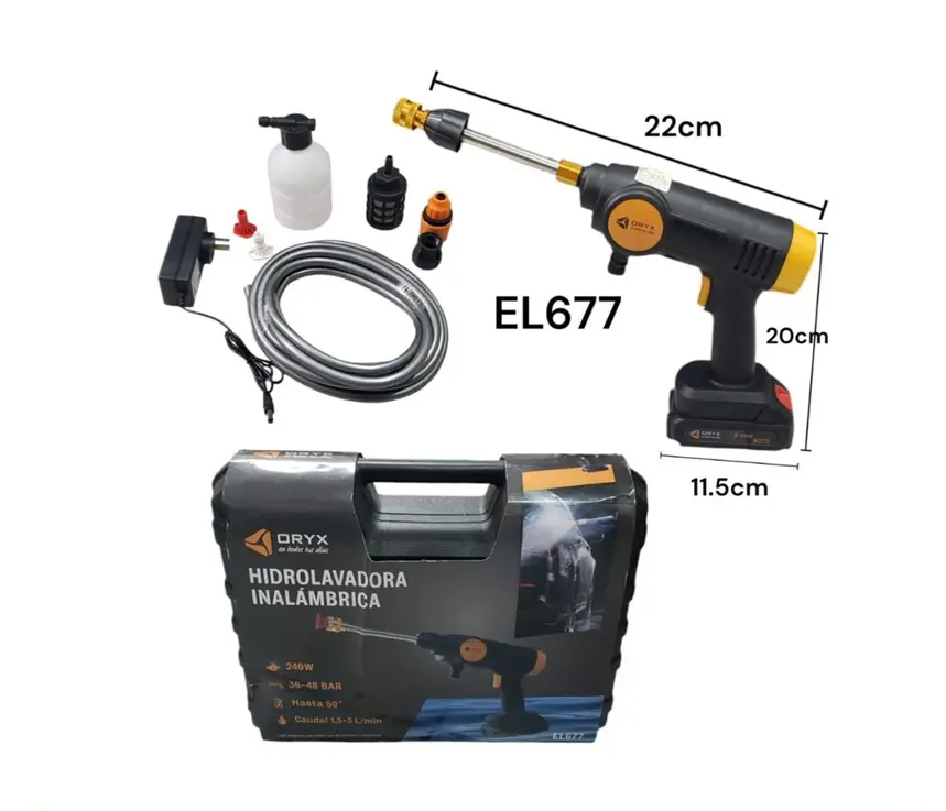 La ORYX EL677 es la solución práctica y versátil para limpiar en cualquier lugar: autos, bicicletas, terrazas, herramientas o espacios exteriores.