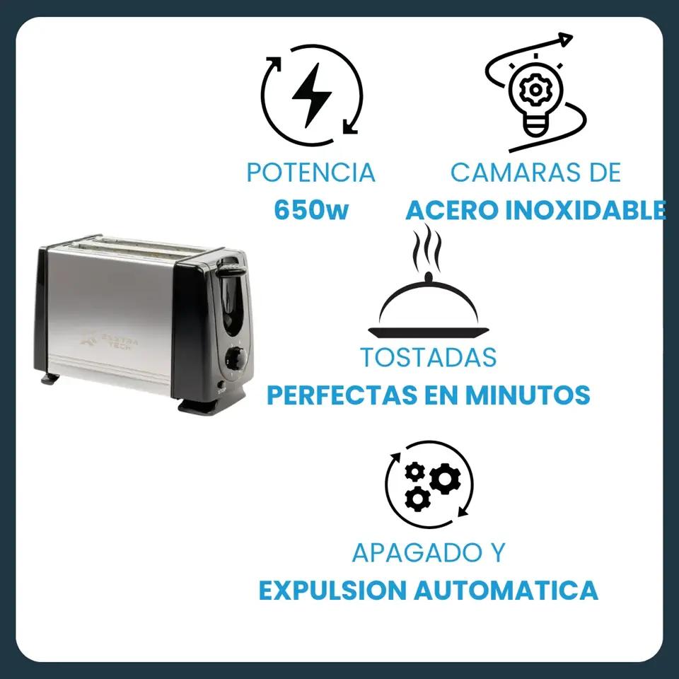 Con apagado automático y expulsión del pan, evita que se queme y te brinda mayor seguridad y comodidad. Su estructura de acero inoxidable garantiza durabilidad y una limpieza sencilla.